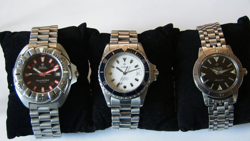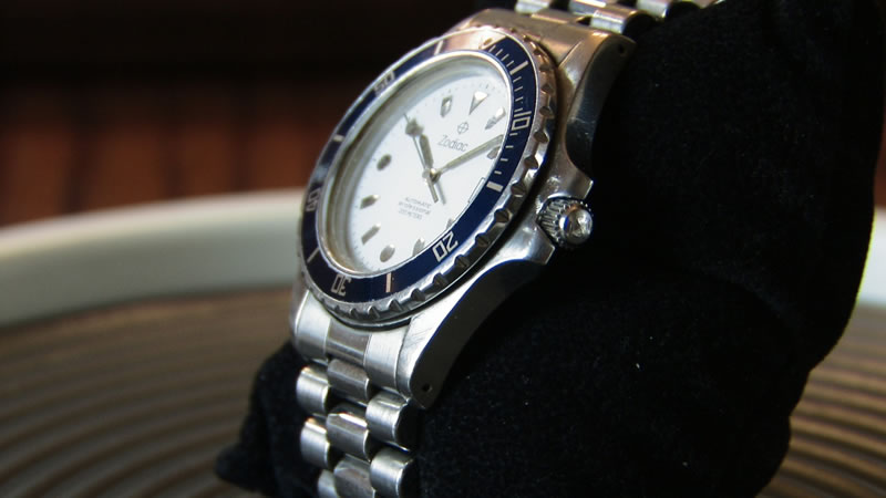 This watch is used but in very good condition. There is normal wear for a watch of this age, but no scratches on the crystal. It is a very nice looking watch. On the back is the model number 306.20.35. I know very little about this watch and have not seen any other Zodiacs that are like it. I would venture a guess that it's circa late 80's or early 90's. Probably just before the "Dot" series. It runs strong and, as all Zodiacs that I've owned, keeps very good time. It appears to be all original.