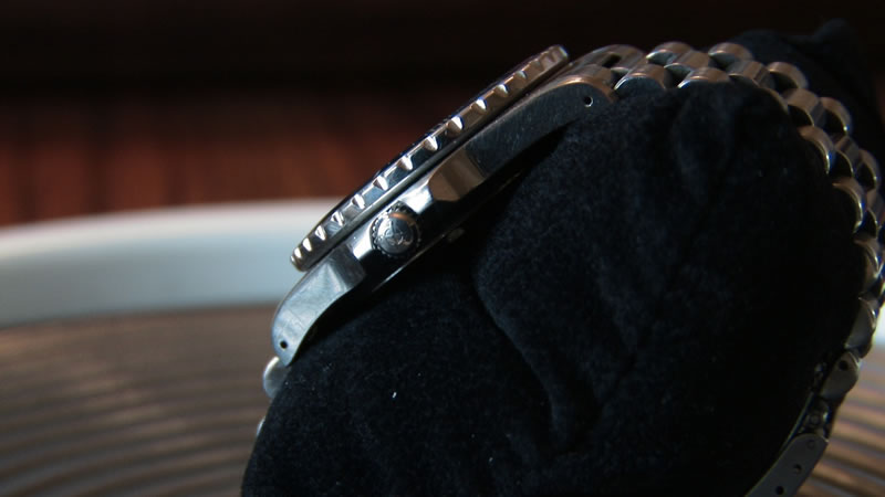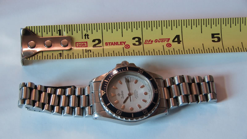 I make no guarantee as to it's watertight abilities. If anyone knows more about this model, please let me know and I'll add it to these comments. I purchased this on ebay because the band looked to be the same size as my Super Sea Wolf 90's watch and I needed a couple extra links. This band is the same width but it gradually gets a little thinner, so I could not use the links. The band is for a smaller wrist than mine, I take a 7.5 inch band and this is about 6-6.5 inches in length. It keeps great time and when I wound it up, it kept perfect time for 3 days. This watch has not been serviced, but it runs very well.